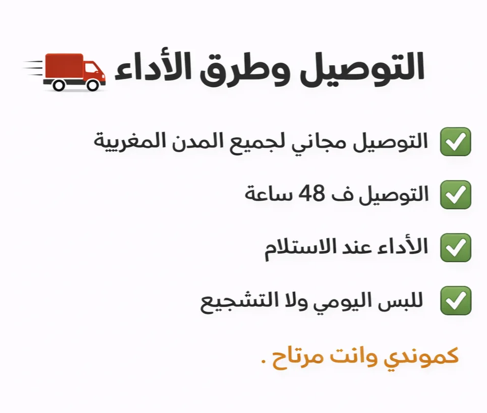 👉 كموندي دابا والتوصيل مجاني لجميع المدن المغربية.